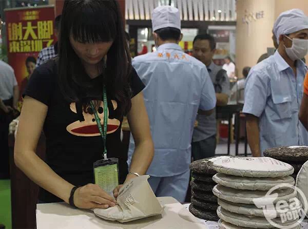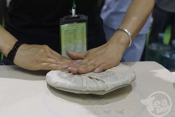 此次茶博会,勐库戎氏将加工厂搬进大家的眼球,为大家展示如何将毛茶压制成饼。下面,跟着熊二,一起学习如何将毛茶制成茶饼。