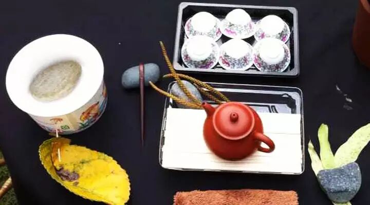 打开便当盒,用完餐点后,以便当盒为茶船,便当盒盖为奉茶盘,便当纸汤碗为水盂,再拾几片落叶,作为杯托和观赏荷,取出心仪的茶壶及茶杯,几番摆设,即为茶席。这是我去年在台湾茶会时的临时创意,也是我一直以来所提倡生活化的泡茶艺术。茶席的构成来源于生活,各种用品都能成为您品茶的用具。可是如此的茶器选择和茶席设计,究竟能不能冲泡出茶之味,表现出茶席之美,到底用性如何,那就要看冲泡者对的茶造诣有多深。