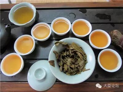 茶湯相片由右到左分爲:1,2,3,4,5,6,7泡。前兩泡快速洗茶去掉。